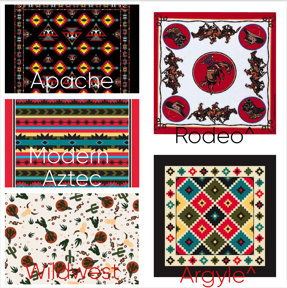 Southwestern style is generally characterized by earth-tone colors to brightly colored woven fabrics, we have a bandanna that works for it all.